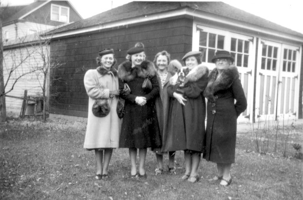 (f0079.jpg) Dorothy Foote, Helen Housenick, Dorothy Archer, Margaret Housenick, Emma Archer, Hartford, Thanksgiving 1939