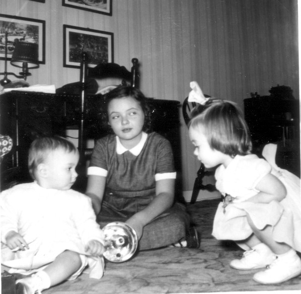 (f0344.jpg) Anne Felsheim, Carol and Susan Foote, December 1952