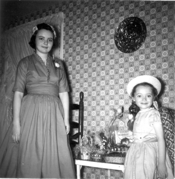 (f0447.jpg) Carol and Susan Foote, Easter 1957
