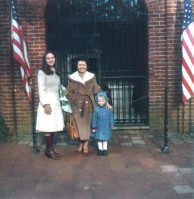 (f0854.jpg) Susan Shaw, Dorothy Foote, Holly Shaw, Washington's Tomb, Mt. Vernon, December 26, 1979 |