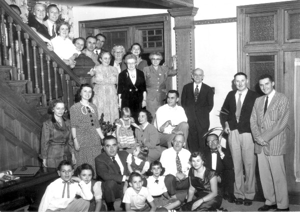(f0877.jpg) Blaetz Reunion, Dorothy Foote, 2nd row, 2nd from left, Carol, Earl, and Susan Foote, in front of her, October 1953
