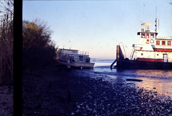 (c0160-h31.jpg) Barge rescuing the beached houseboat after a storm in Mississippi.