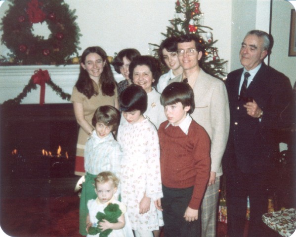 (f0784.jpg) Susan Shaw, Suzie Bradley, Dorothy Foote, Mary Lou Bradley, David Shaw, Earl Foote, Deborah, Lori, and Marty Bradley, Holly Shaw, December 24, 1977