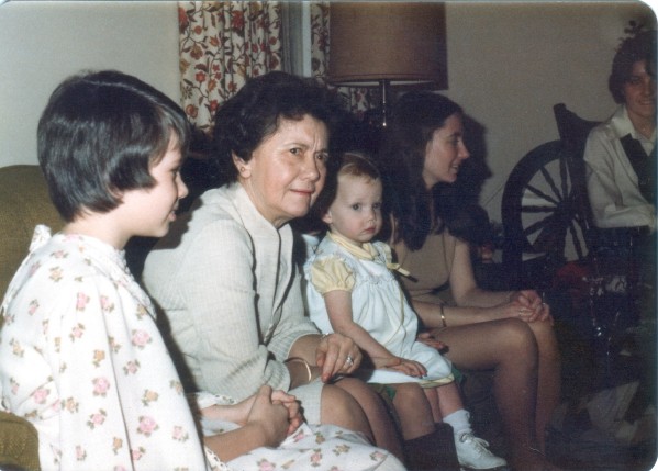 (f0797.jpg) Lori Bradley, Dorothy Foote, Holly and Susan Shaw, Mary Lou Bradley, December 24, 1977