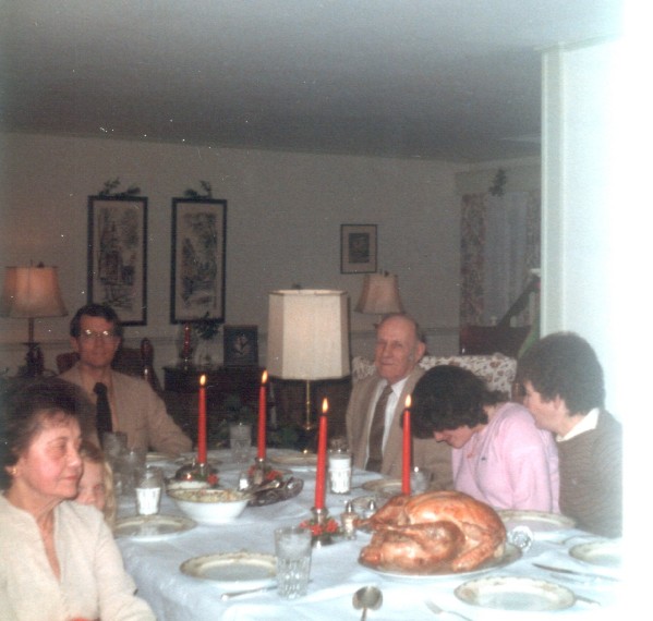 (f0933.jpg) Dorothy Foote, Holly and David Shaw, Bill Hoffman, Lori Bradley, Carol Hoffman, Christmas 1982