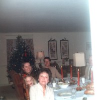 (f0932.jpg) Dorothy Foote, Holly, Susan, and David Shaw, Bill Hoffman, Christmas 1982 |
